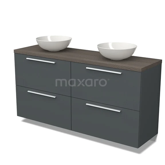 Modulo Plato Vanity units for countertop basin | 160 cm Dark grey Flat front Dark brown oak worktop 4 high drawers