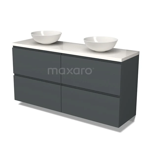Modulo Plato Vanity units for countertop basin | 160 cm Dark grey Handle-less front High-gloss white worktop 4 high drawers