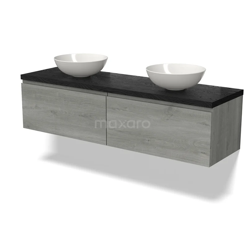 Modulo Plato Vanity units for countertop basin | 160 cm Grey oak Frame front Black oak worktop 2 Side-by-side drawers