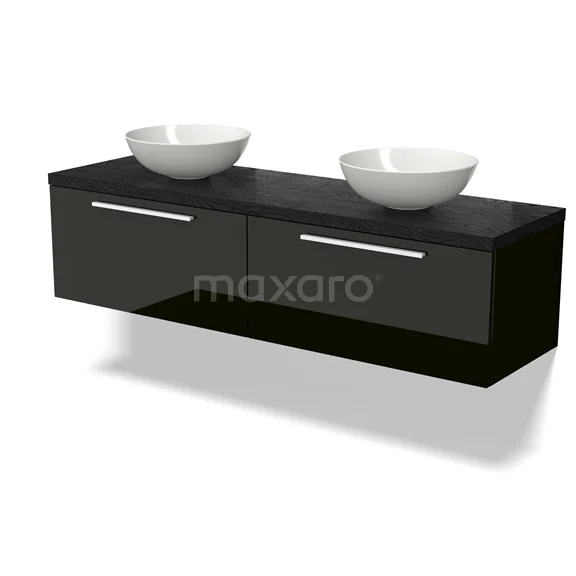 Modulo Plato Vanity units for countertop basin | 160 cm High-gloss black Flat front Black oak worktop 2 Side-by-side drawers