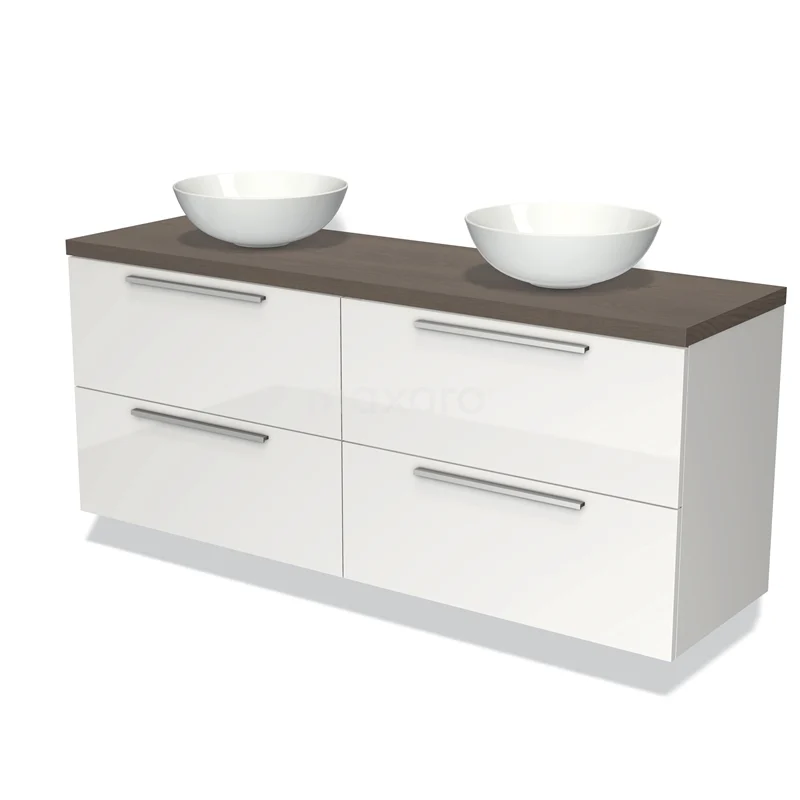 Modulo Plato Vanity units for countertop basin | 160 cm High-gloss white Flat front Dark brown oak worktop 4 drawers