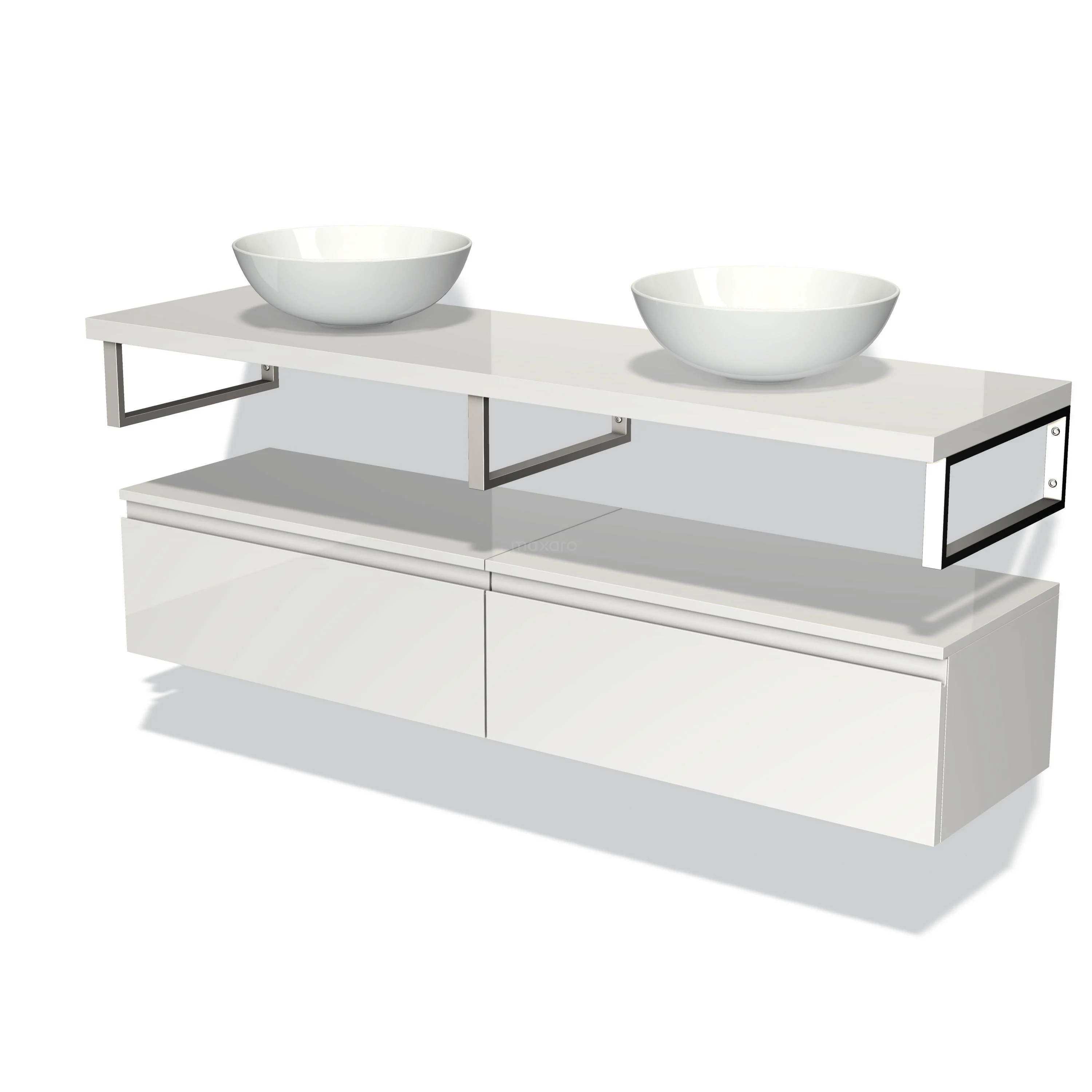 Modulo Plato Vanity units for countertop basin | 160 cm High-gloss white Handle-less front High-gloss white worktop Low floating