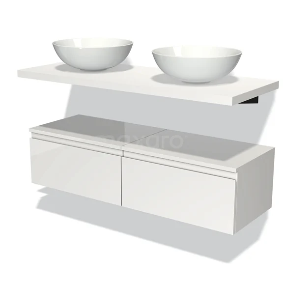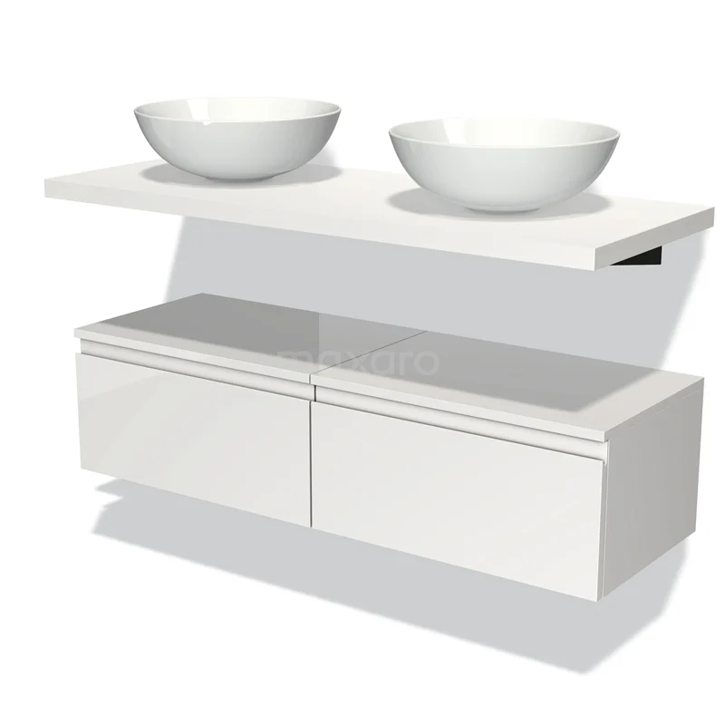 Modulo Plato Vanity units for countertop basin | 160 cm High-gloss white Handle-less front Matte white worktop Low floating