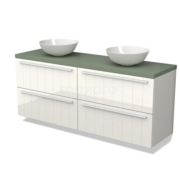 Modulo Plato Vanity units for countertop basin | 160 cm High-gloss white Slat front Sage green worktop 4 drawers