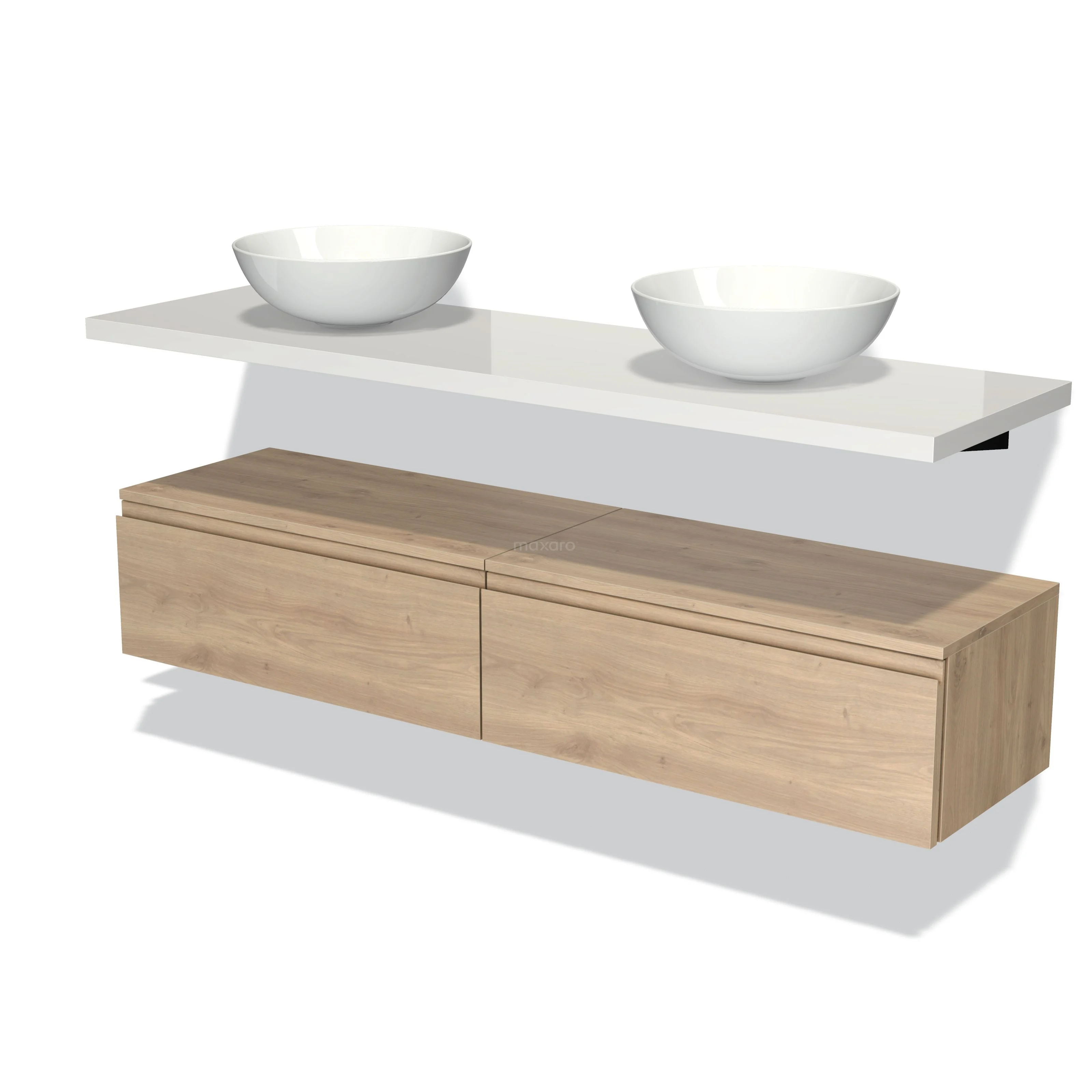 Modulo Plato Vanity units for countertop basin | 160 cm Light brown oak Handle-less front High-gloss white worktop Low floating