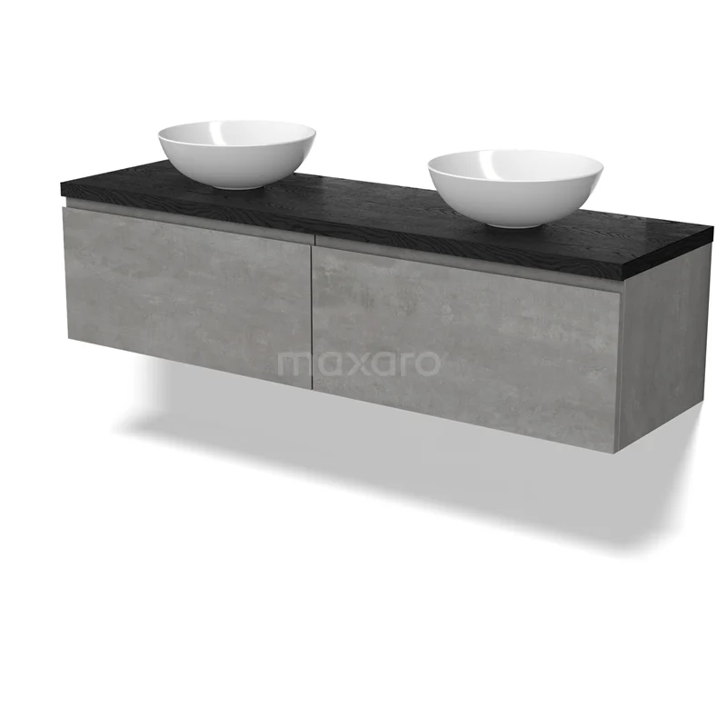 Modulo Plato Vanity units for countertop basin | 160 cm Light grey concrete Handle-less front Black oak worktop 2 Side-by-side drawers