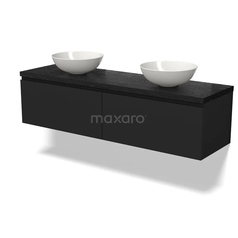 Modulo Plato Vanity units for countertop basin | 160 cm Matte black Handle-less front Black oak worktop 2 Side-by-side drawers
