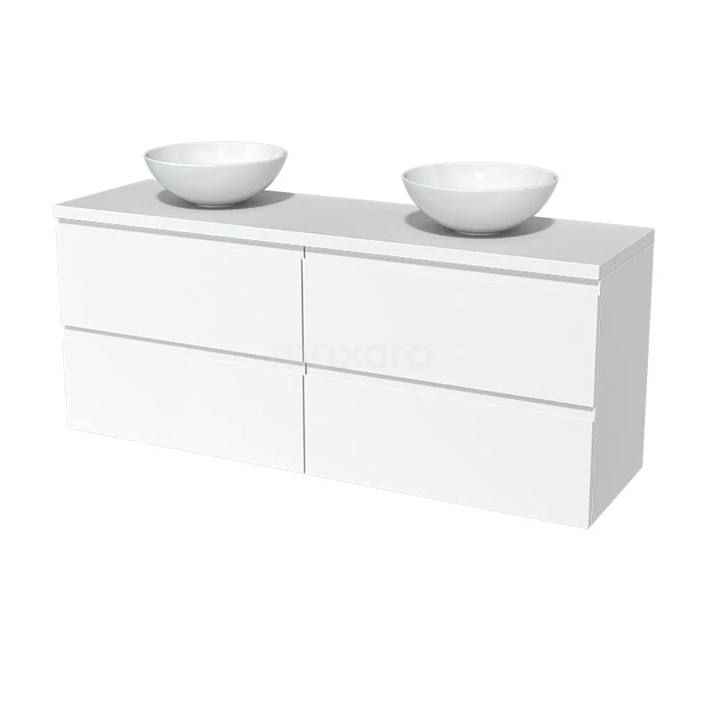 Modulo Plato Vanity units for countertop basin | 160 cm Matte white Handle-less front Matte white worktop 4 drawers
