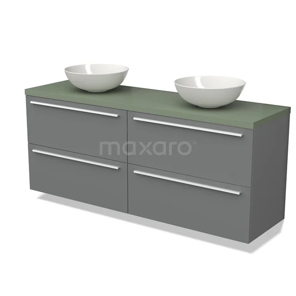 Modulo Plato Vanity units for countertop basin | 160 cm Mid grey Flat front Sage green worktop 4 drawers
