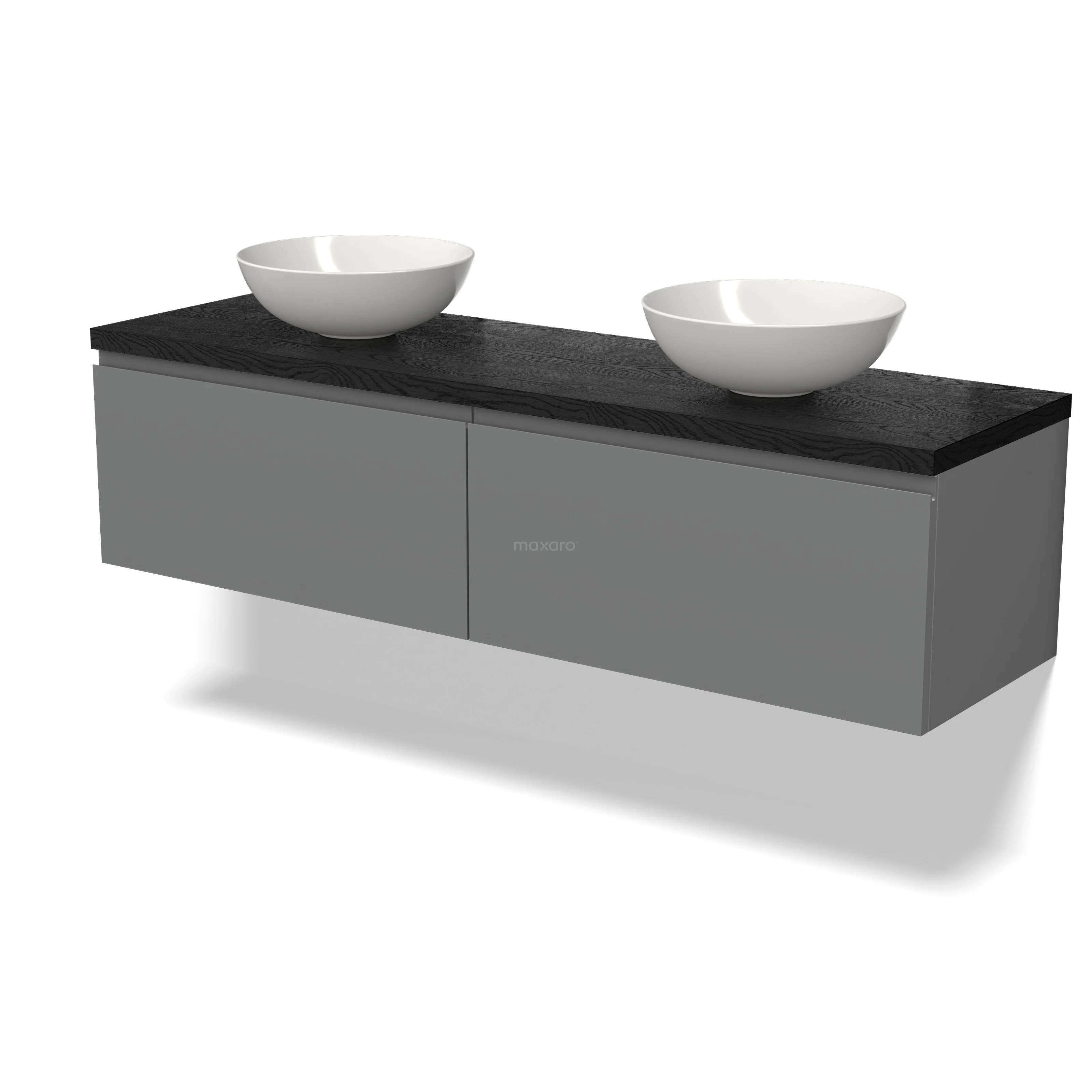 Modulo Plato Vanity units for countertop basin | 160 cm Mid grey Handle-less front Black oak worktop 2 Side-by-side drawers