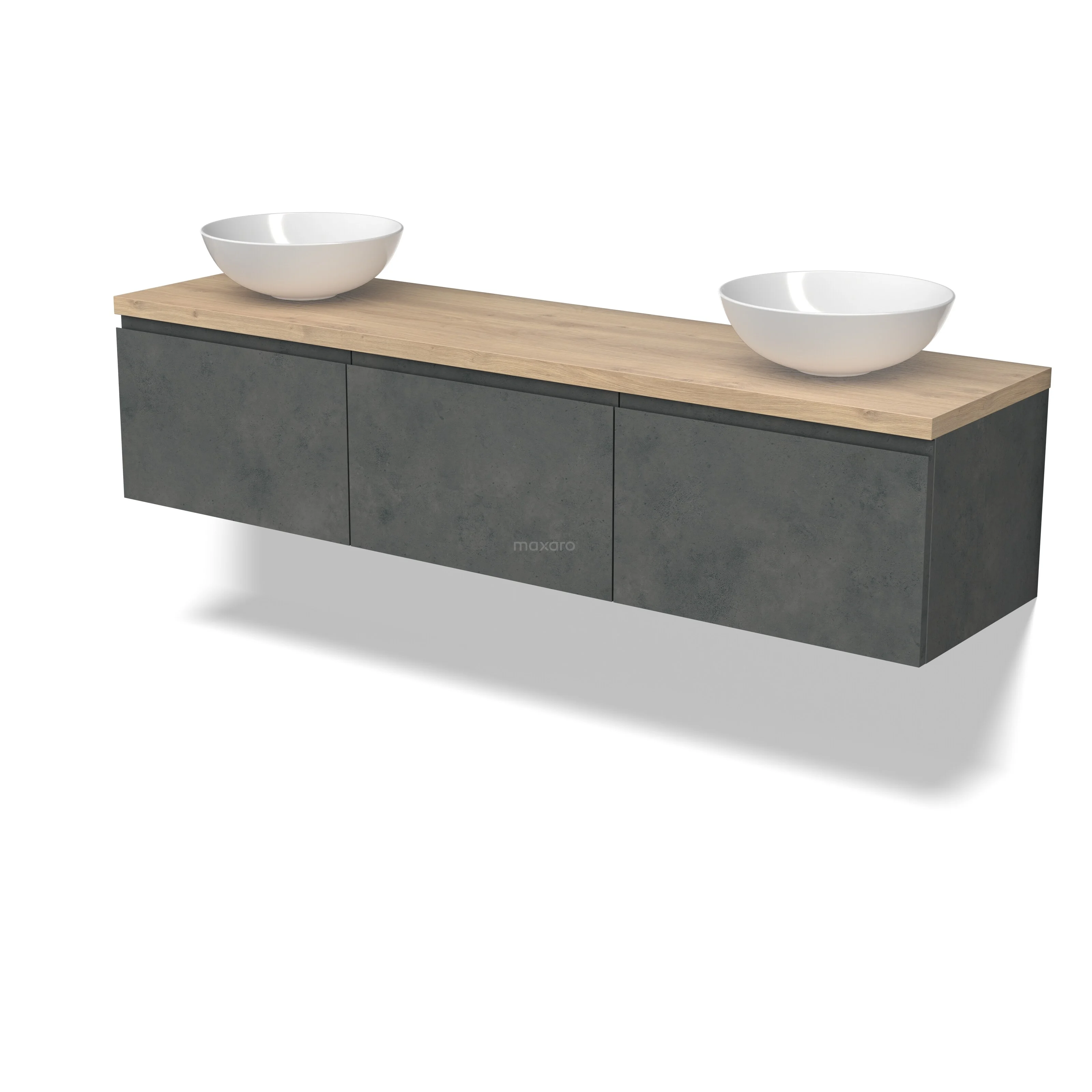 Modulo Plato Vanity units for countertop basin | 180 cm Dark grey concrete Handle-less front Light brown oak worktop 3 Side-by-side drawers