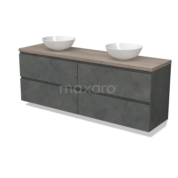 Modulo Plato Vanity units for countertop basin | 180 cm Dark grey concrete Handle-less front Oak worktop 4 drawers