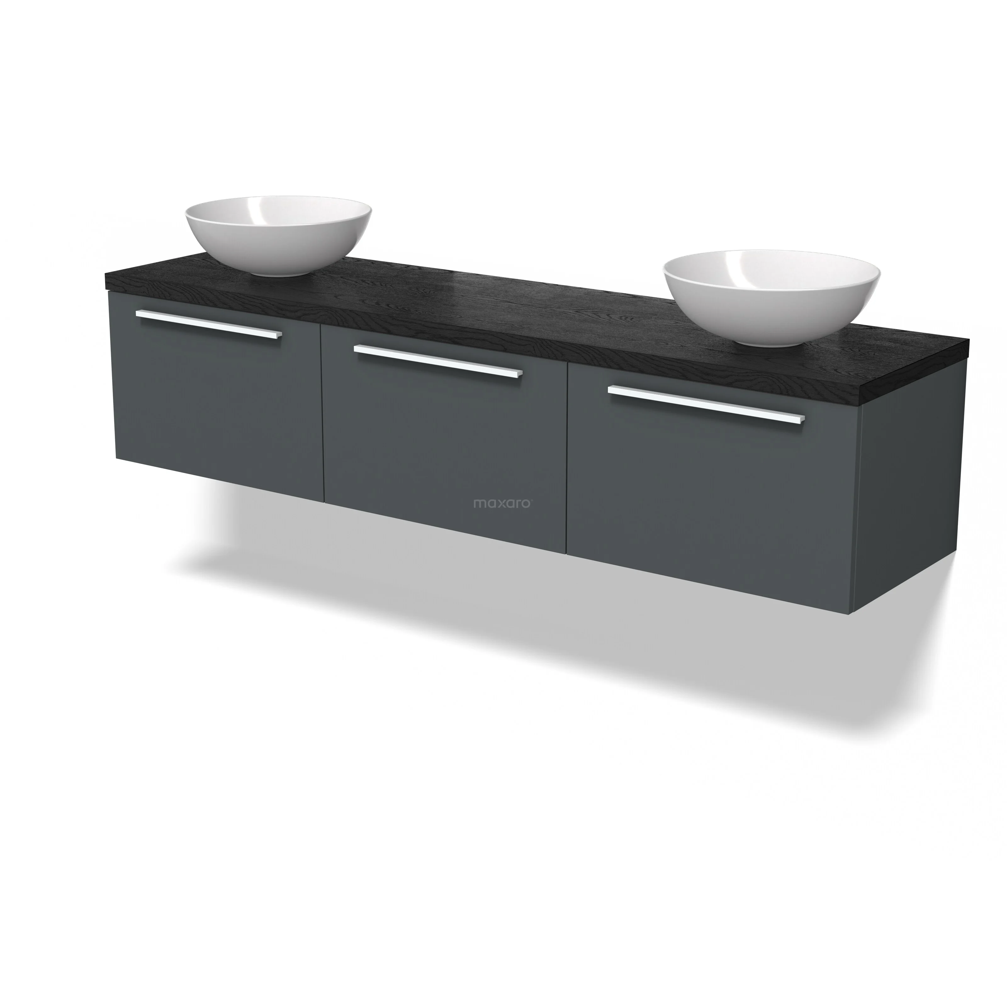 Modulo Plato Vanity units for countertop basin | 180 cm Dark grey Flat front Black oak worktop 3 Side-by-side drawers