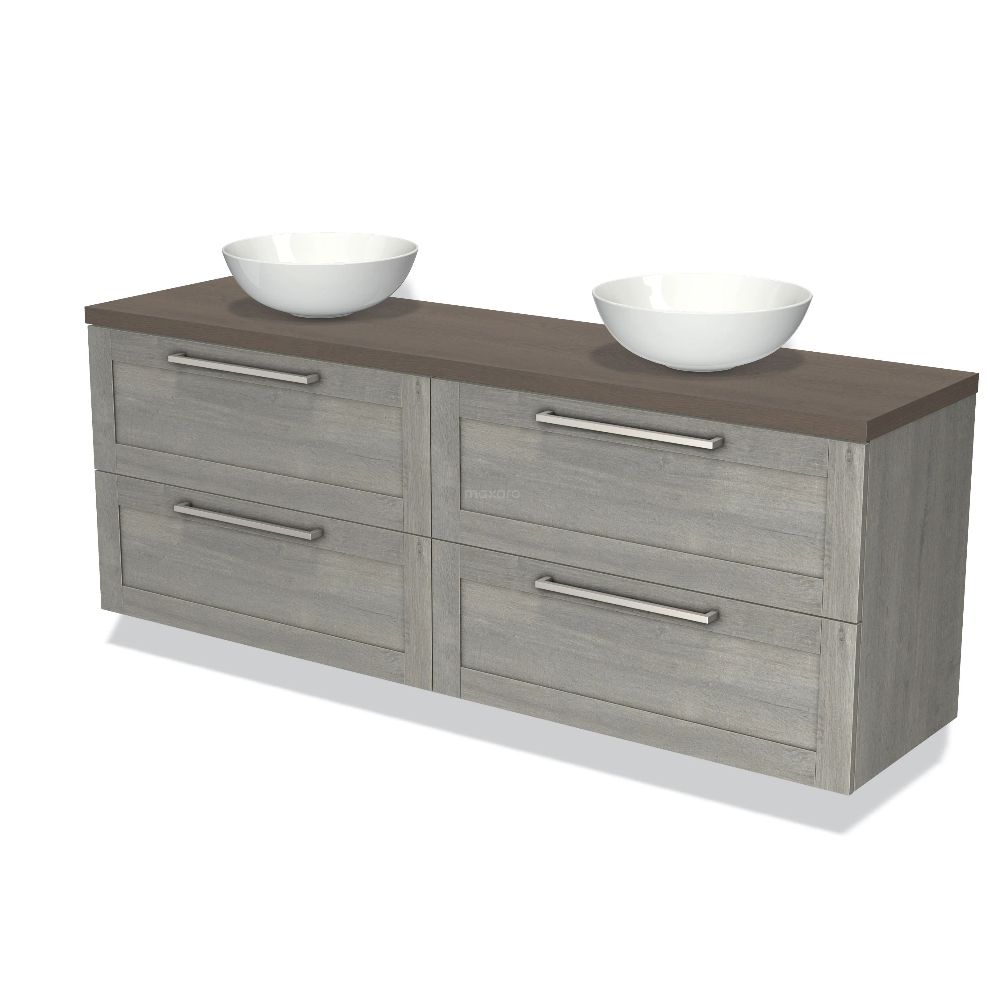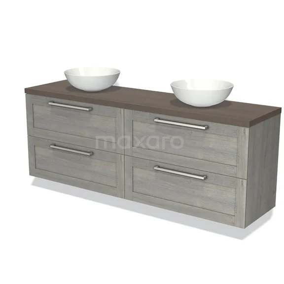 Modulo Plato Vanity units for countertop basin | 180 cm Grey oak Frame front Dark brown oak worktop 4 drawers