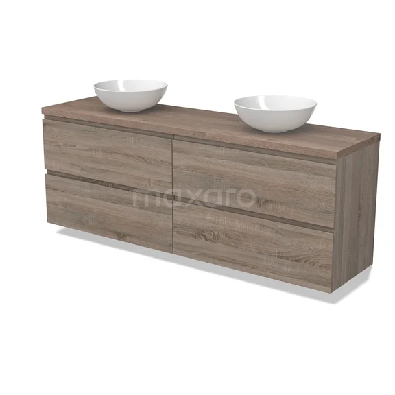 Modulo Plato Vanity units for countertop basin | 180 cm Oak Handle-less front Mid brown oak worktop 4 drawers