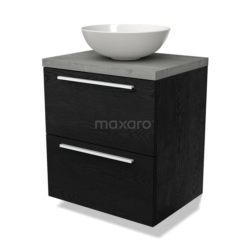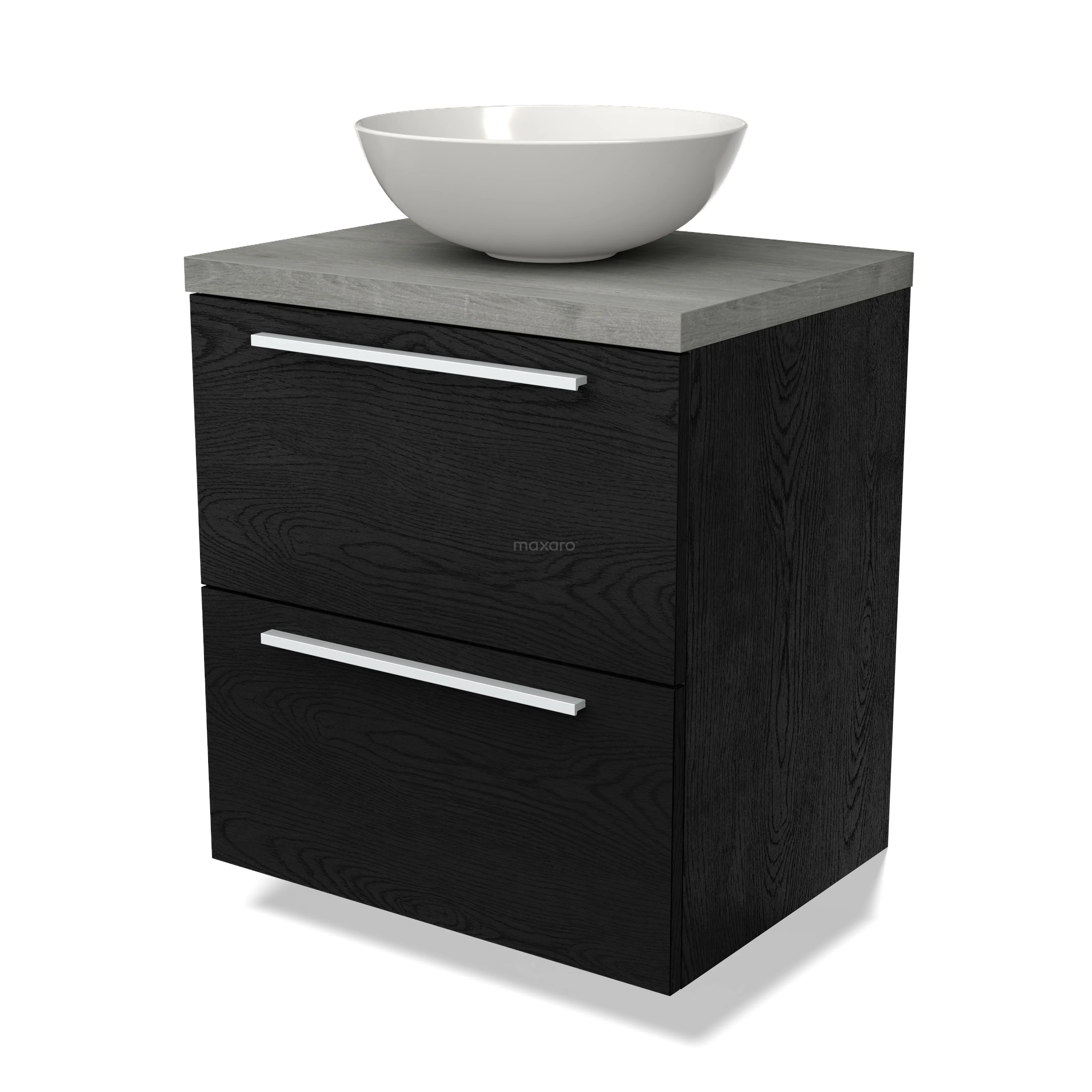 Modulo Plato Vanity units for countertop basin | 60 cm Black oak Flat front Grey oak worktop 2 Stacked drawers