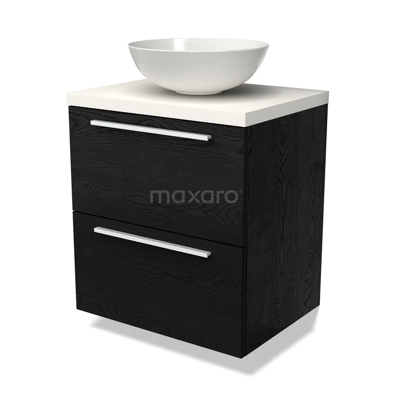 Modulo Plato Vanity units for countertop basin | 60 cm Black oak Flat front Matte white worktop 2 Stacked drawers