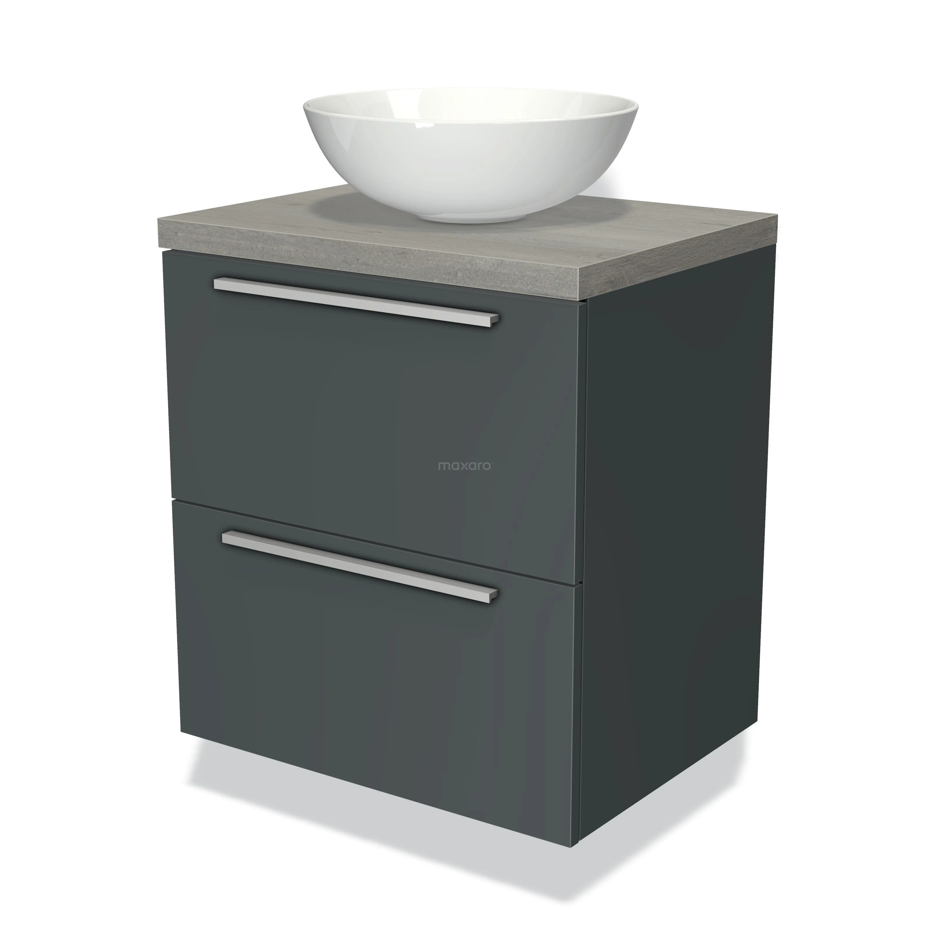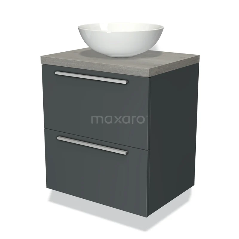 Modulo Plato Vanity units for countertop basin | 60 cm Dark grey Flat front Grey oak worktop 2 Stacked drawers