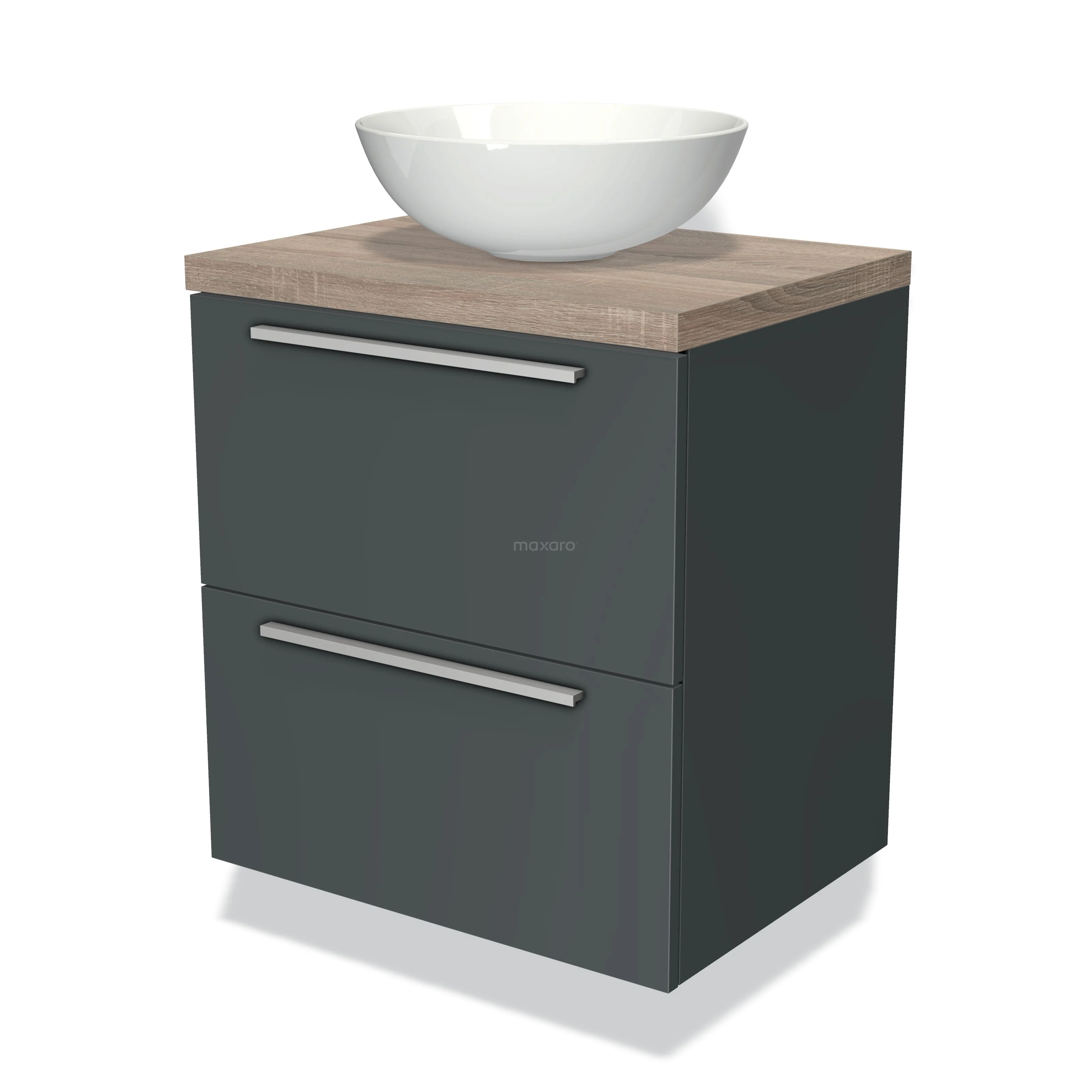 Modulo Plato Vanity units for countertop basin | 60 cm Dark grey Flat front Oak worktop 2 Stacked drawers
