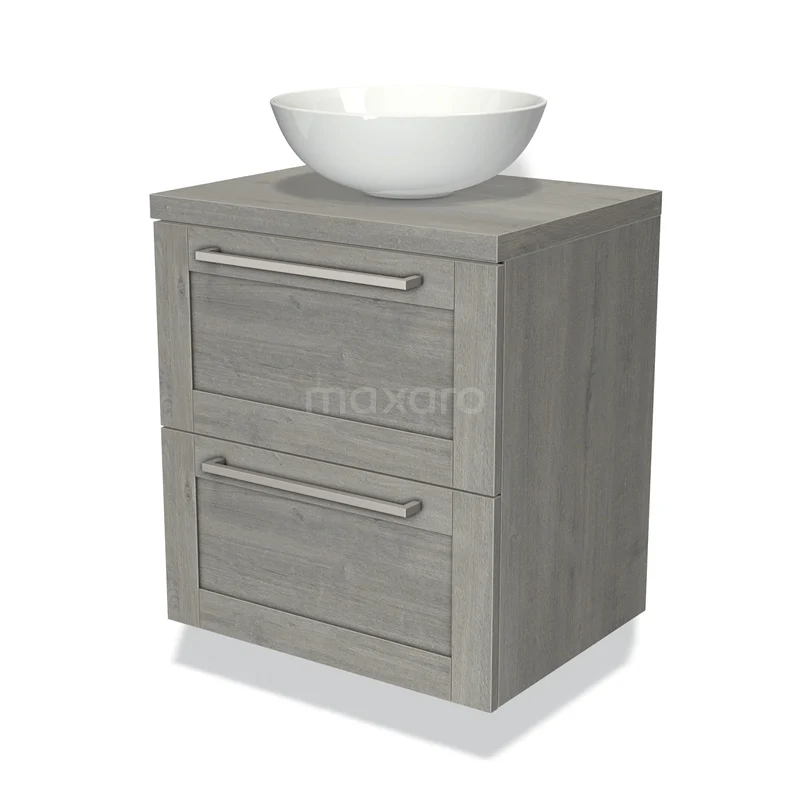 Modulo Plato Vanity units for countertop basin | 60 cm Grey oak Bordered front Grey oak worktop 2 Stacked drawers
