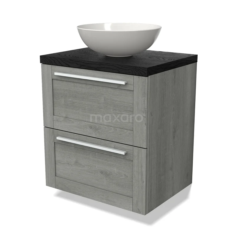 Modulo Plato Vanity units for countertop basin | 60 cm Grey oak Frame front Black oak worktop 2 Stacked drawers