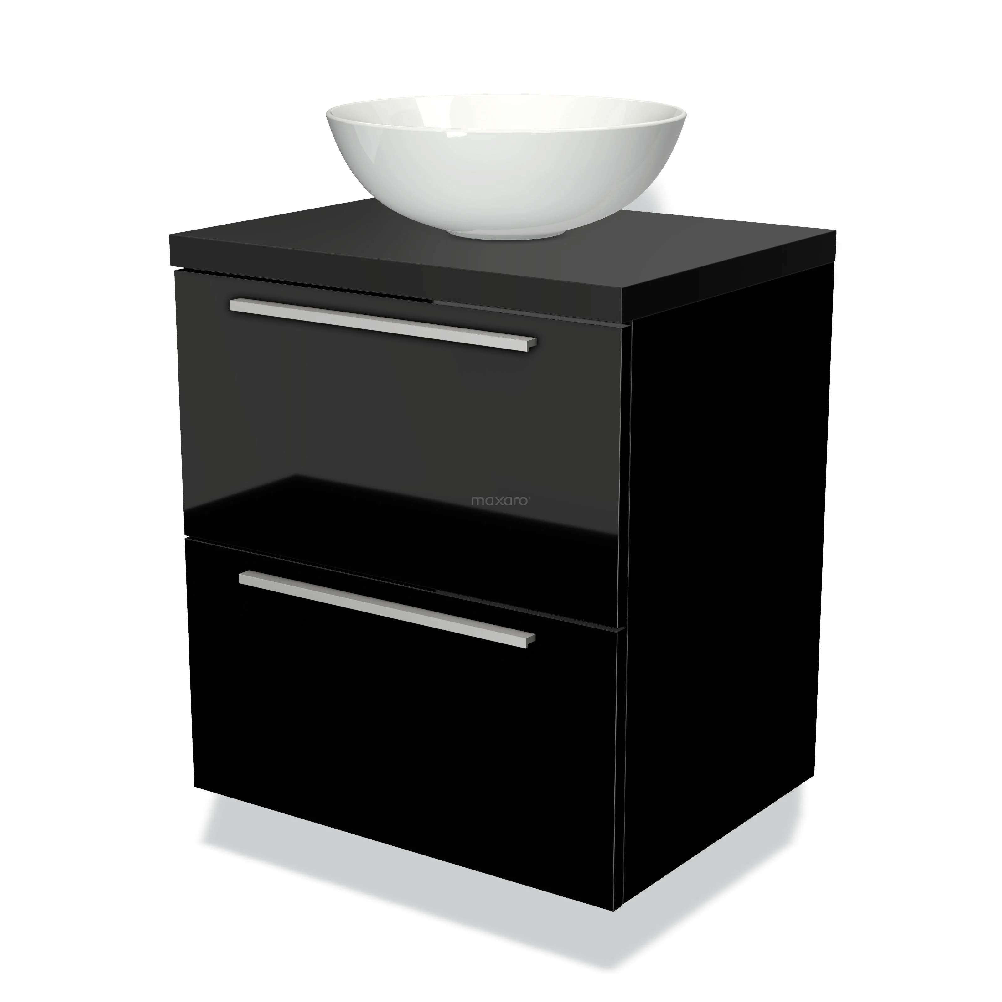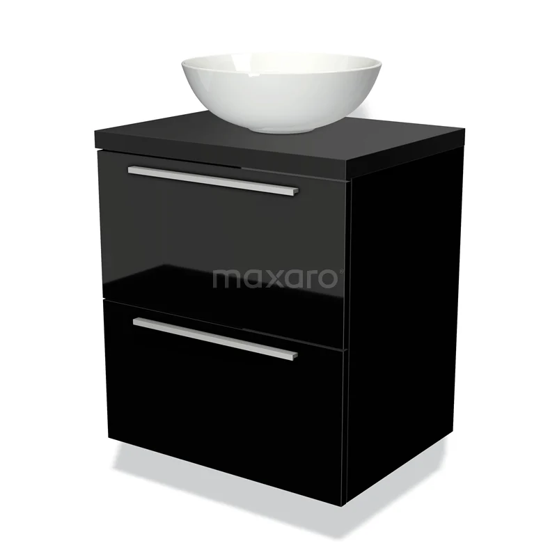 Modulo Plato Vanity units for countertop basin | 60 cm High-gloss black Flat front Matte black worktop 2 Stacked drawers