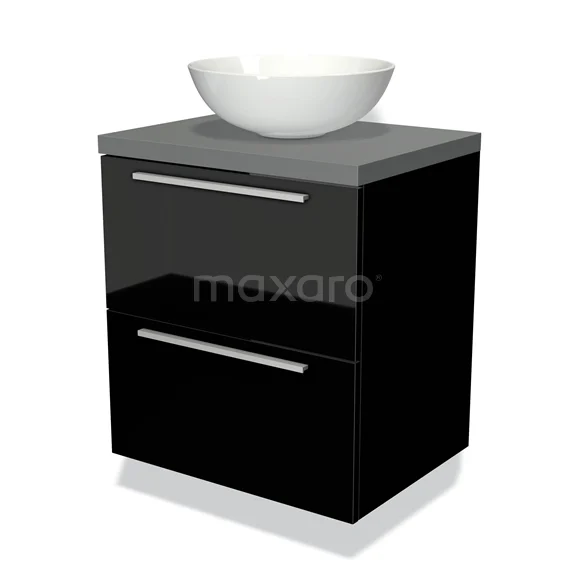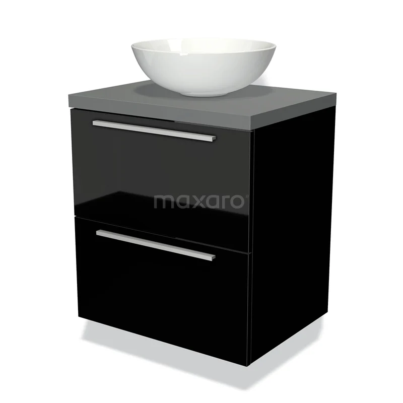 Modulo Plato Vanity units for countertop basin | 60 cm High-gloss black Flat front Mid grey worktop 2 Stacked drawers