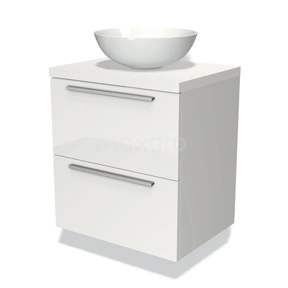 Modulo Plato Vanity units for countertop basin | 60 cm High-gloss white Flat front Matte white worktop 2 Stacked drawers