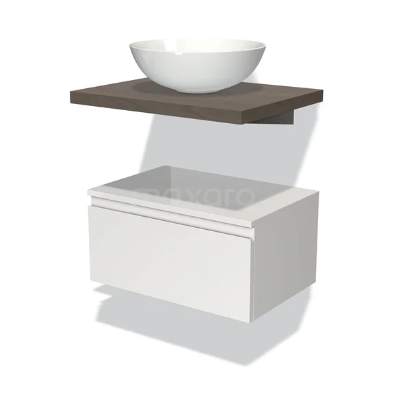 Modulo Plato Vanity units for countertop basin | 60 cm High-gloss white Handle-less front Dark brown oak worktop Low floating