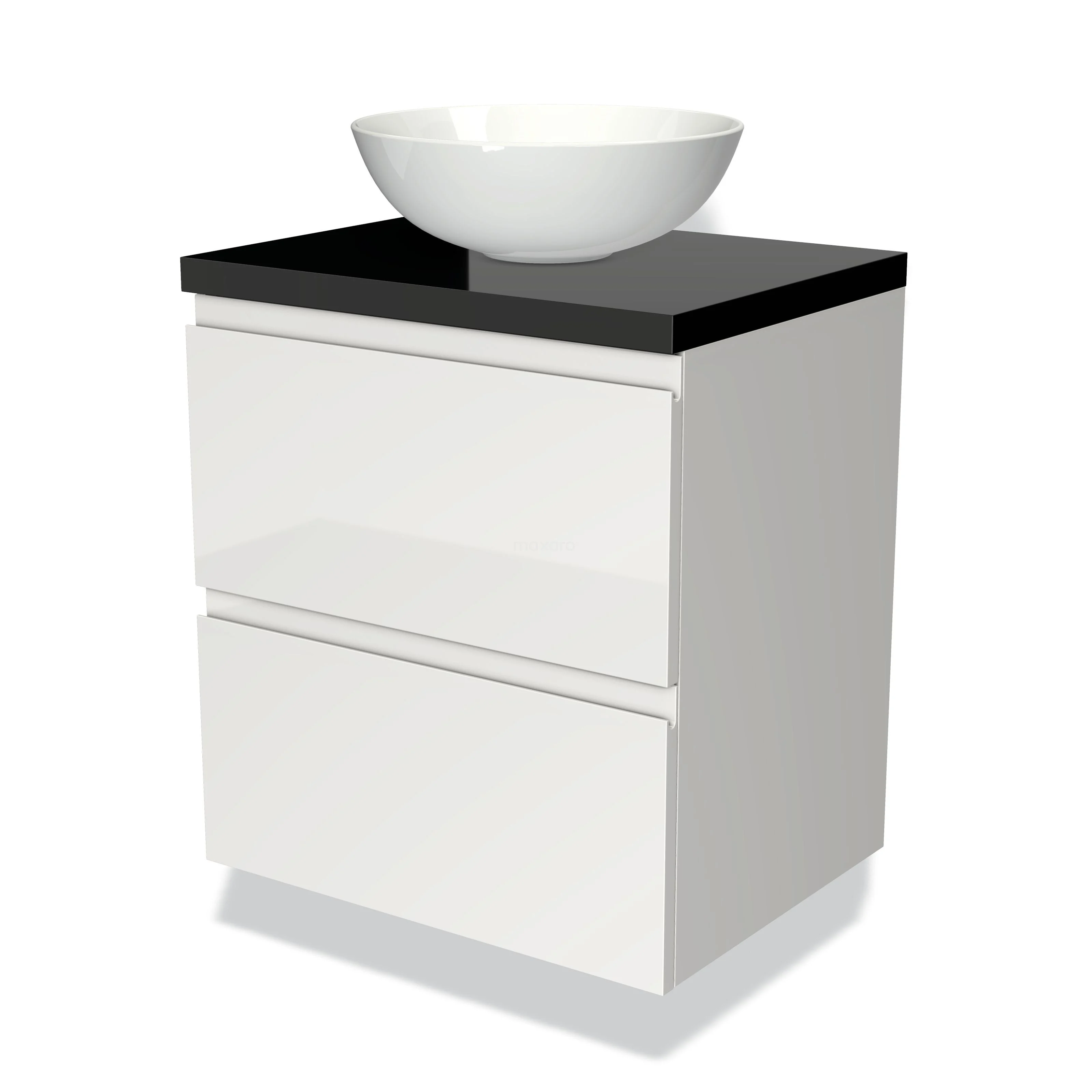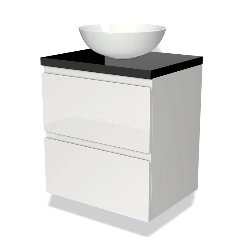 Modulo Plato Vanity units for countertop basin | 60 cm High-gloss white Handle-less front High-gloss black worktop 2 Stacked drawers