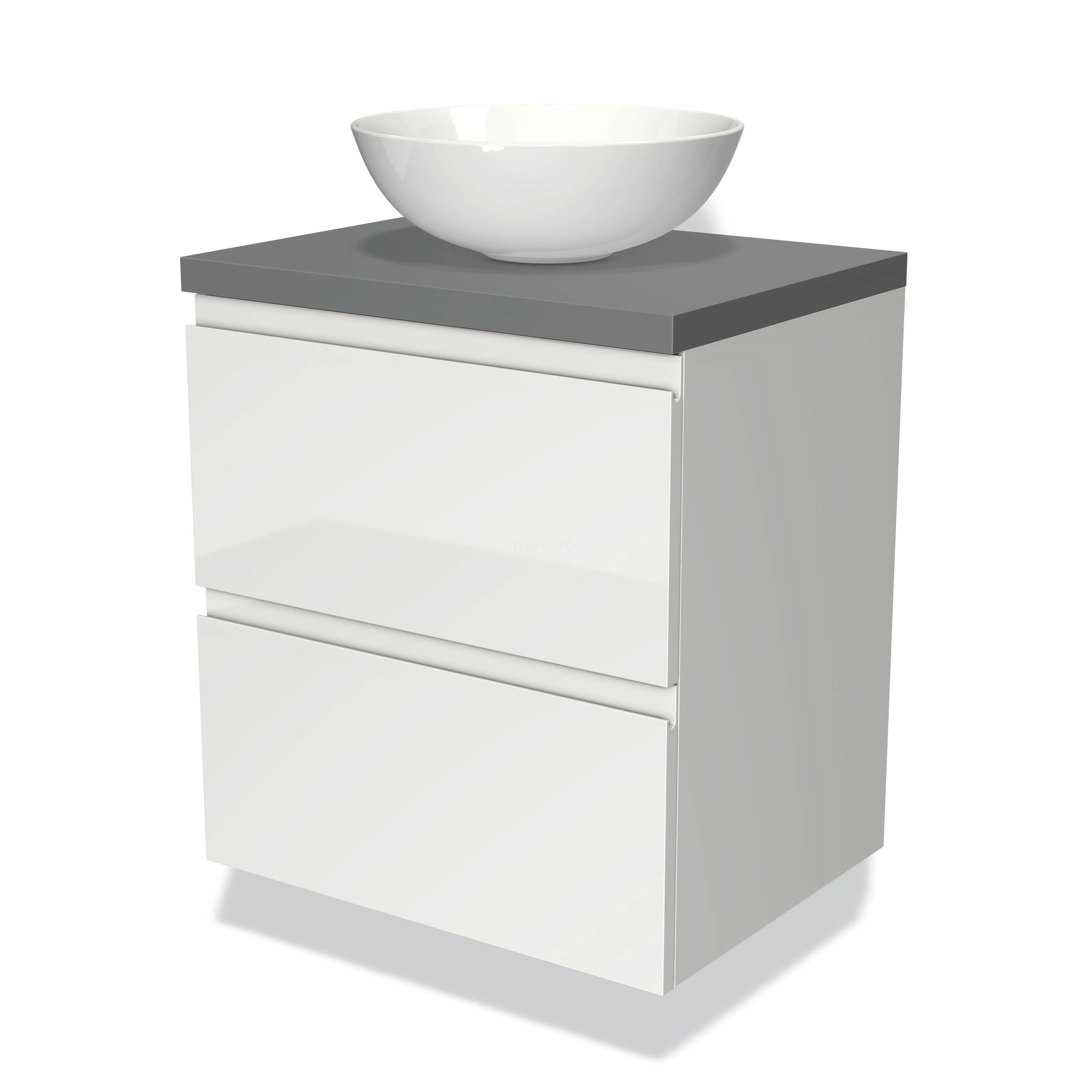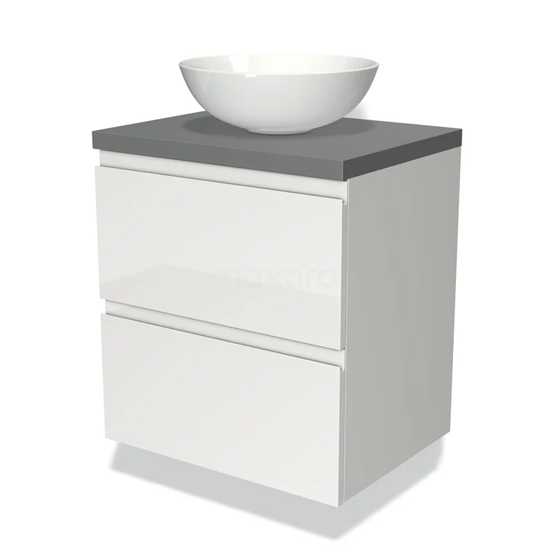 Modulo Plato Vanity units for countertop basin | 60 cm High-gloss white Handle-less front Mid grey worktop 2 Stacked drawers