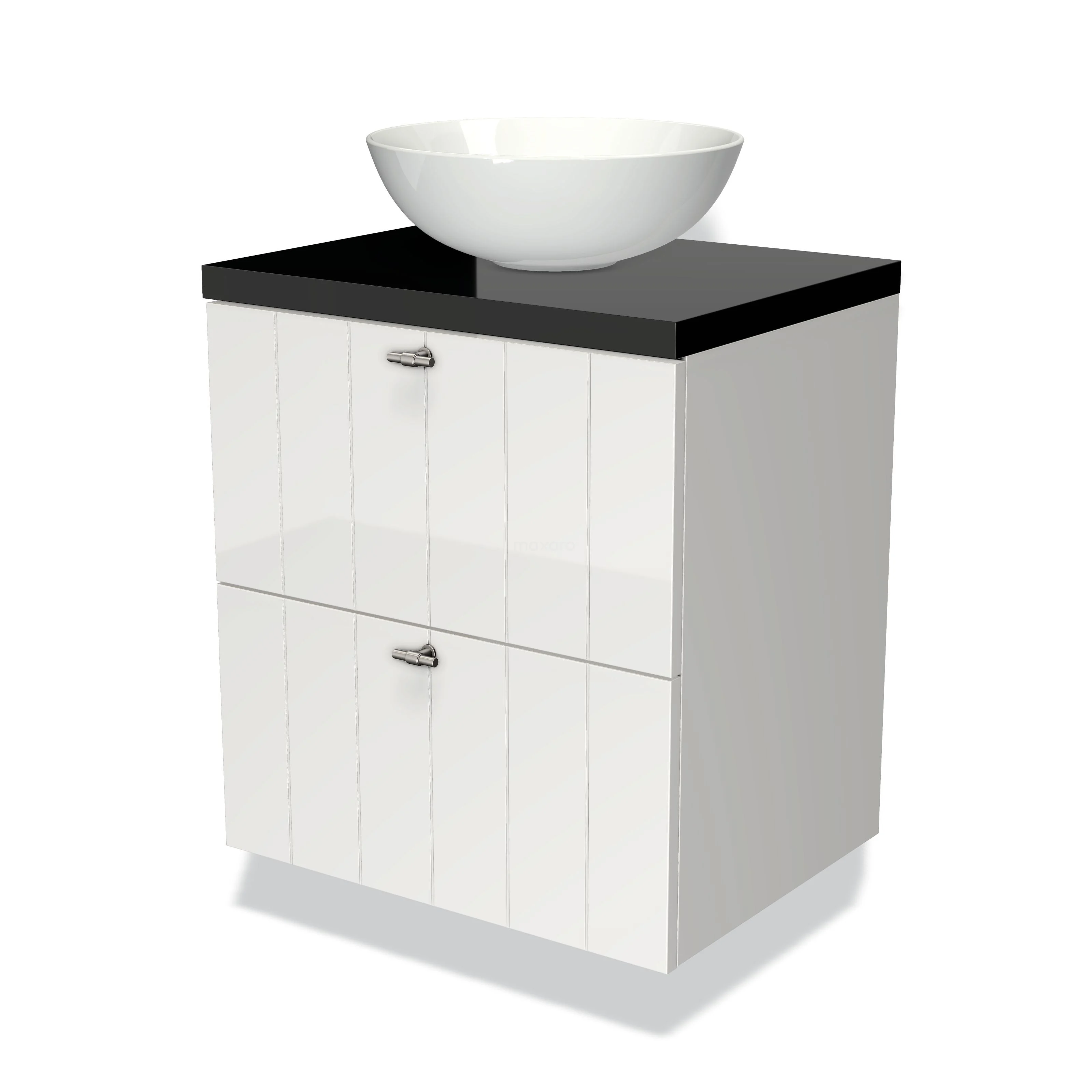 Modulo Plato Vanity units for countertop basin | 60 cm High-gloss white Slat front High-gloss black worktop 2 Stacked drawers