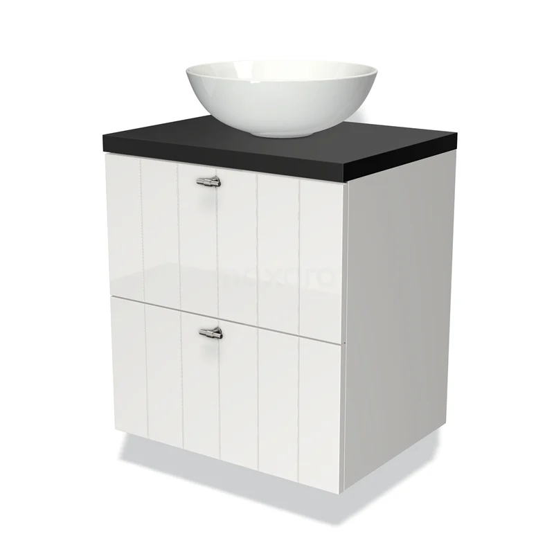 Modulo Plato Vanity units for countertop basin | 60 cm High-gloss white Slat front Matte black worktop 2 Stacked drawers