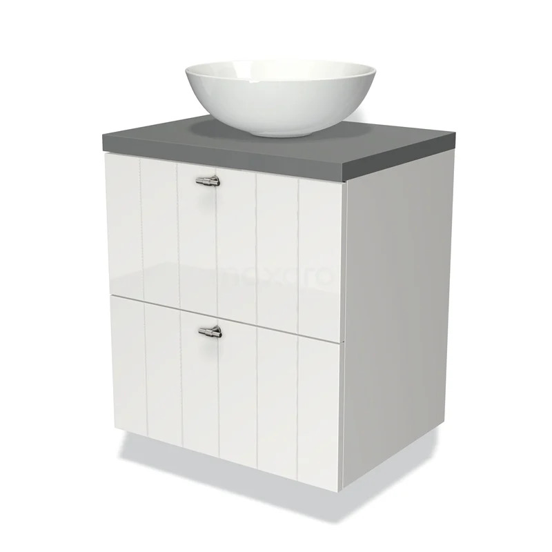 Modulo Plato Vanity units for countertop basin | 60 cm High-gloss white Slat front Mid grey worktop 2 Stacked drawers