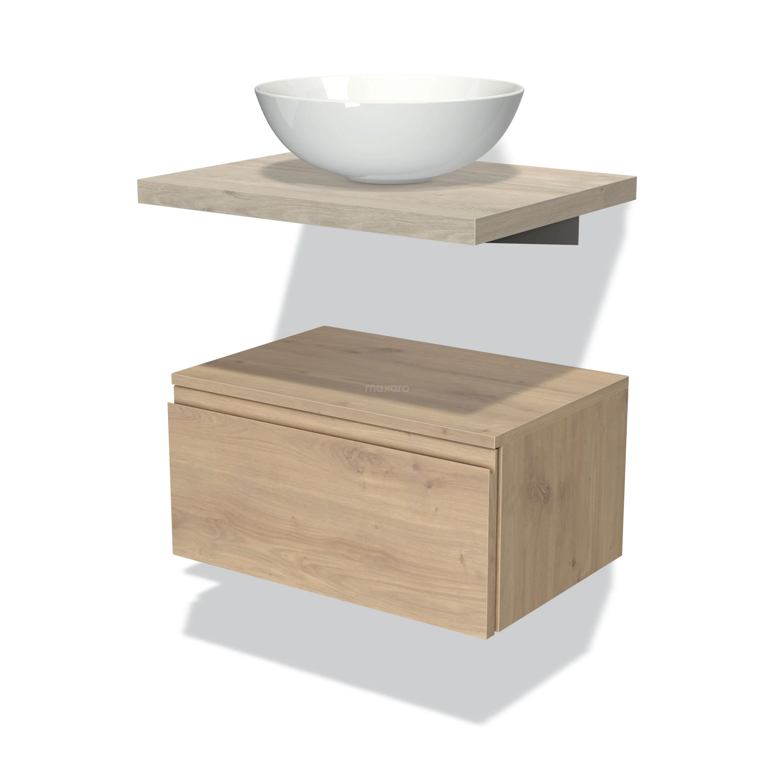Modulo Plato Vanity units for countertop basin | 60 cm Light brown oak Handle-less front Light grey oak worktop Low floating