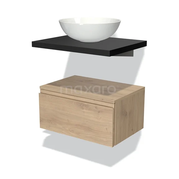 Modulo Plato Vanity units for countertop basin | 60 cm Light brown oak Handle-less front Matte black worktop Low floating