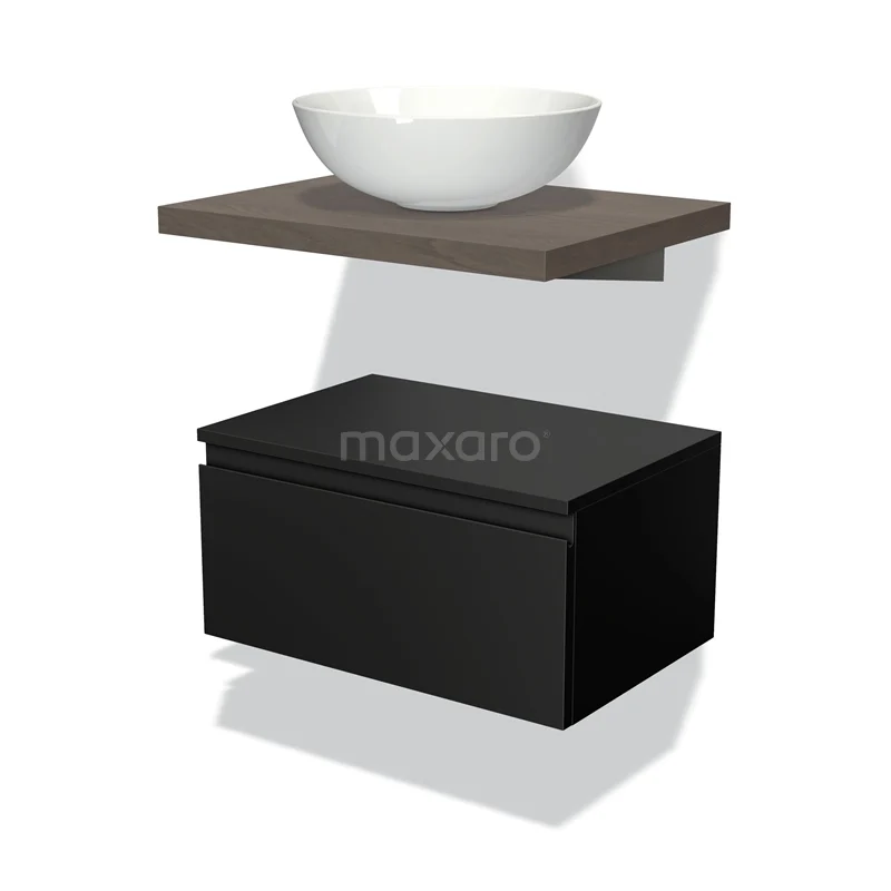 Modulo Plato Vanity units for countertop basin | 60 cm Matte black Handle-less front Dark brown oak worktop Low floating