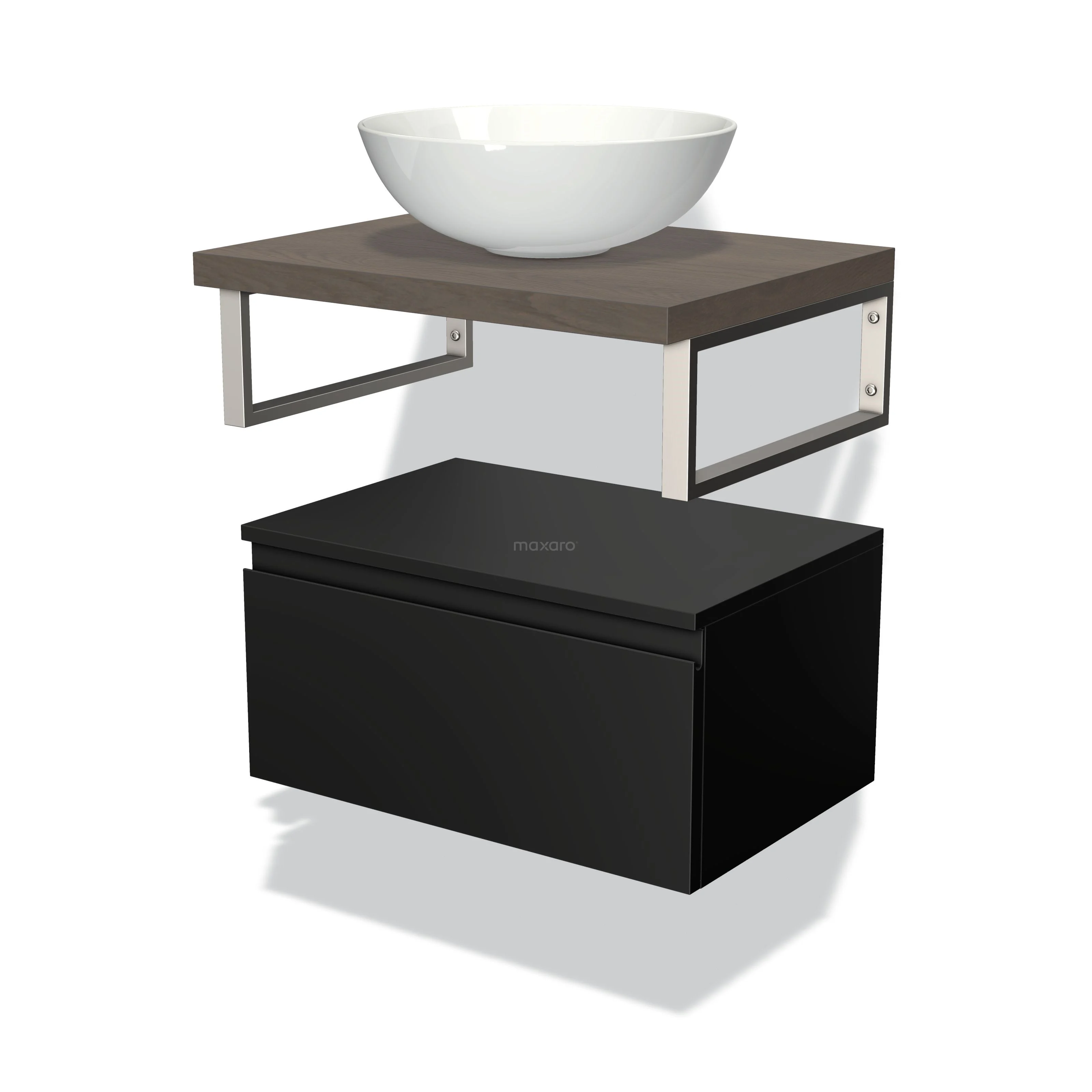 Modulo Plato Vanity units for countertop basin | 60 cm Matte black Handle-less front Dark brown oak worktop Low floating