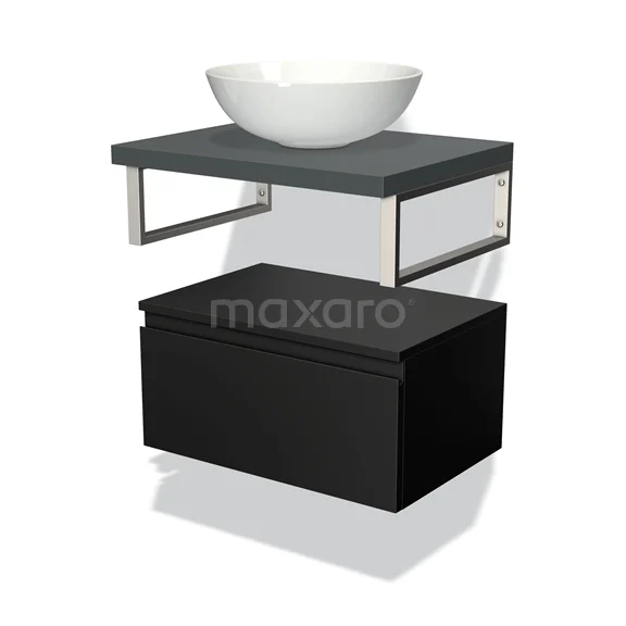 Modulo Plato Vanity units for countertop basin | 60 cm Matte black Handle-less front Dark grey worktop Low floating