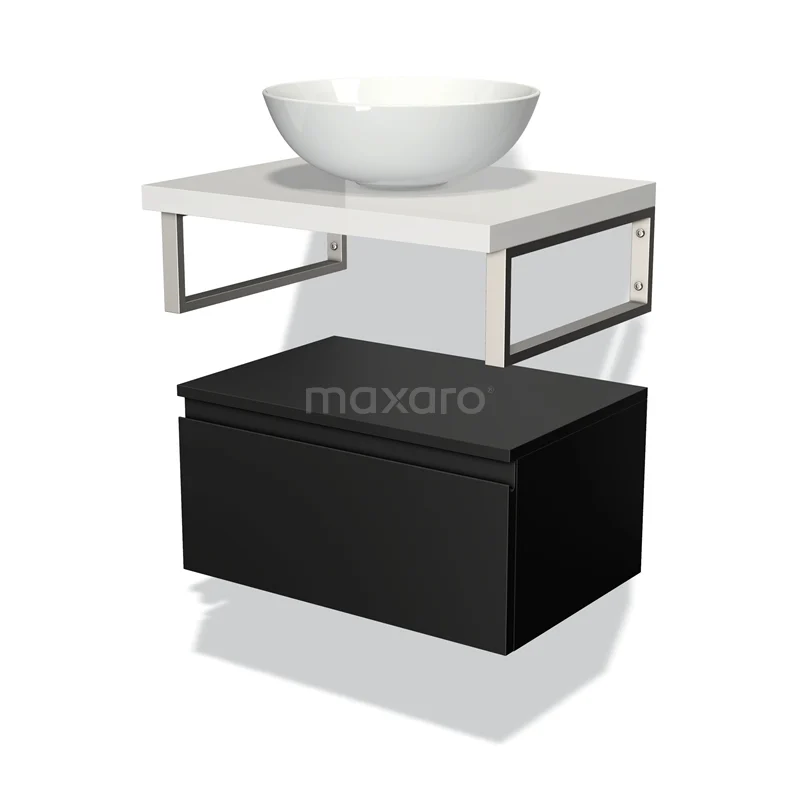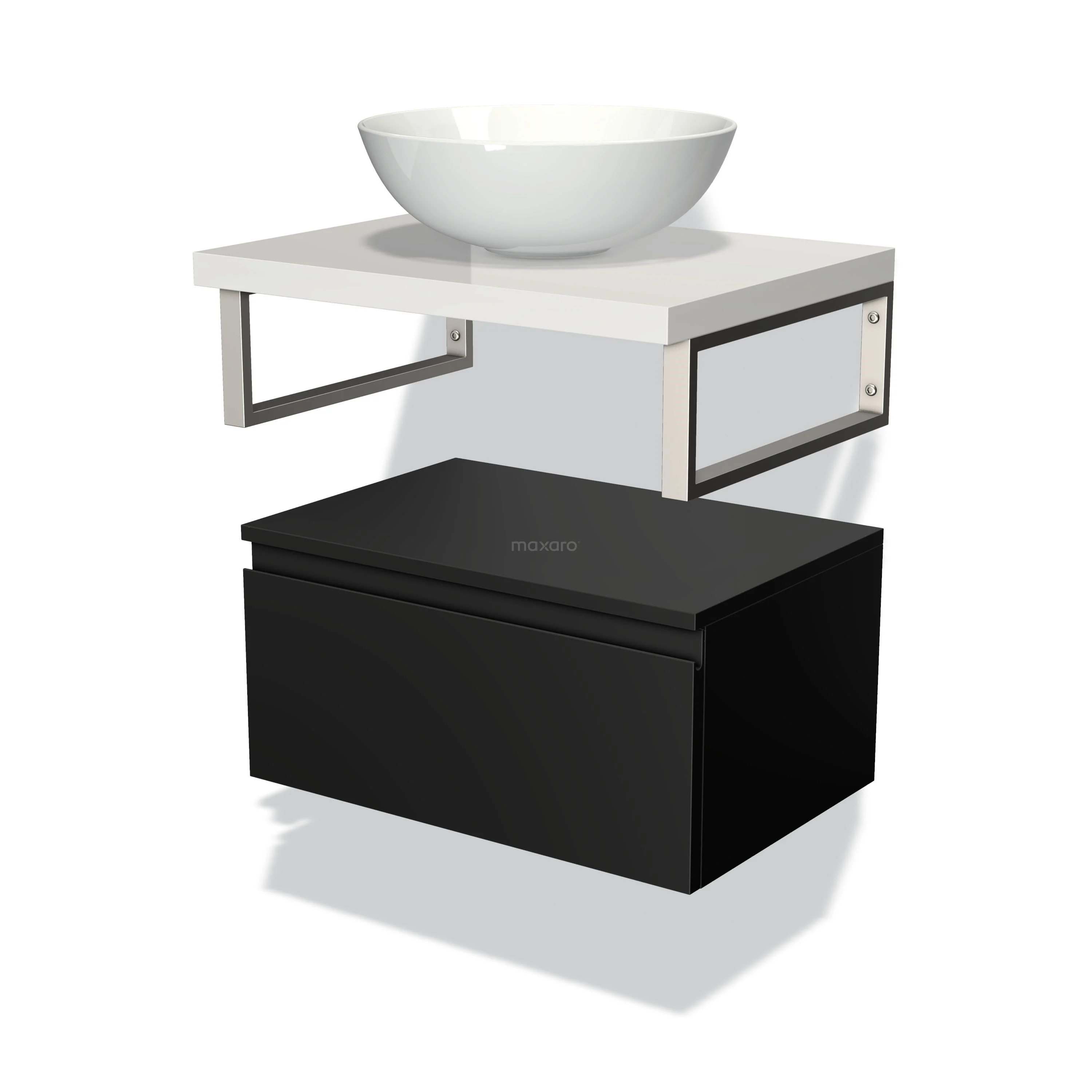 Modulo Plato Vanity units for countertop basin | 60 cm Matte black Handle-less front High-gloss white worktop Low floating