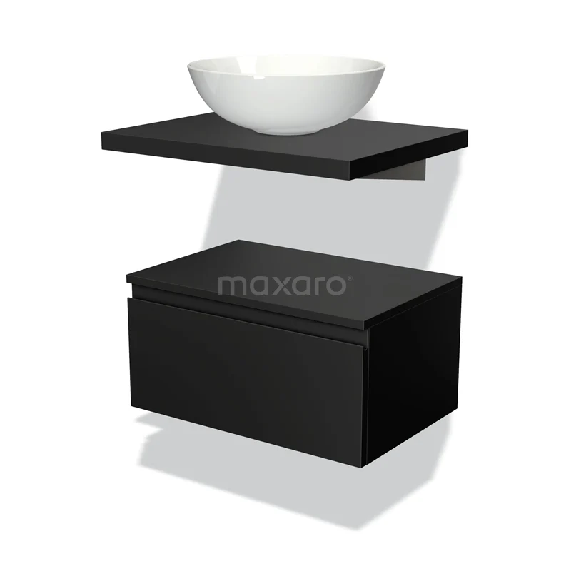 Modulo Plato Vanity units for countertop basin | 60 cm Matte black Handle-less front Matte black worktop Low floating
