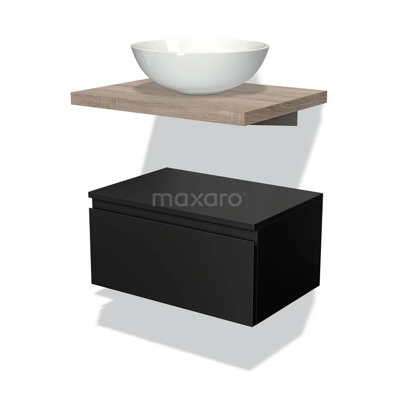 Modulo Plato Vanity units for countertop basin | 60 cm Matte black Handle-less front Oak worktop Low floating