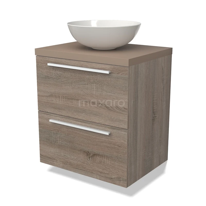 Modulo Plato Vanity units for countertop basin | 60 cm Oak Flat front Taupe worktop 2 Stacked drawers