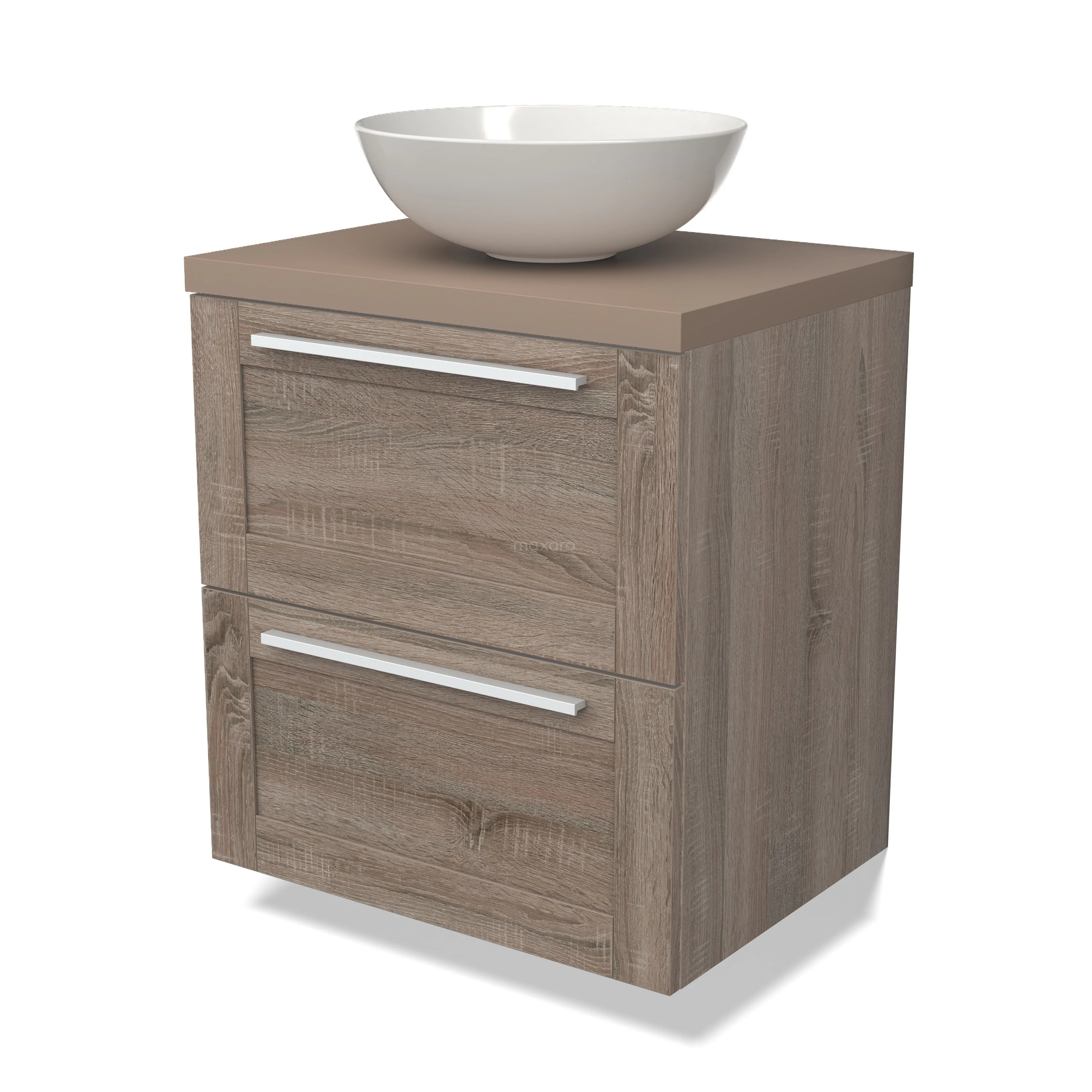 Modulo Plato Vanity units for countertop basin | 60 cm Oak Frame front Taupe worktop 2 Stacked drawers