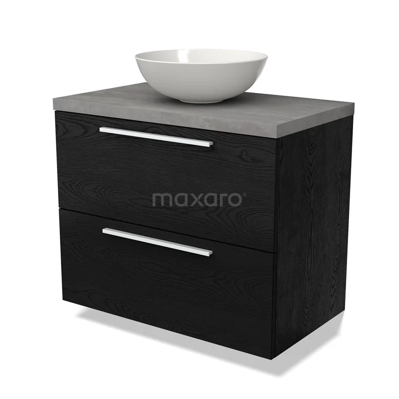Modulo Plato Vanity units for countertop basin | 80 cm Black oak Flat front Light grey concrete worktop 2 Stacked drawers