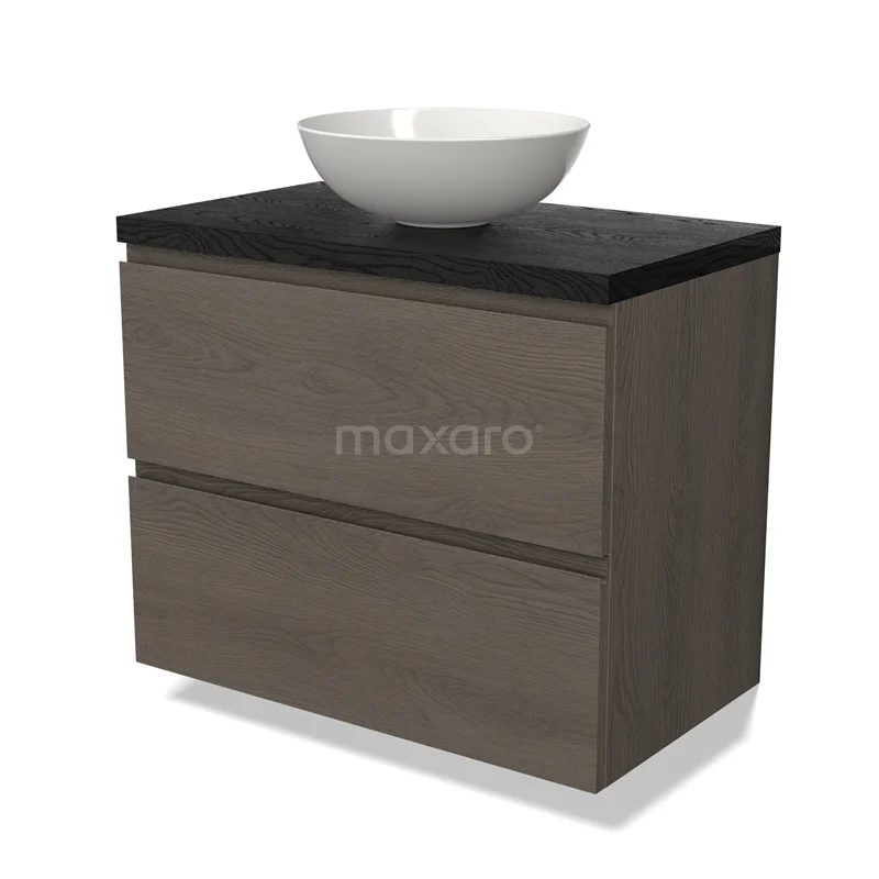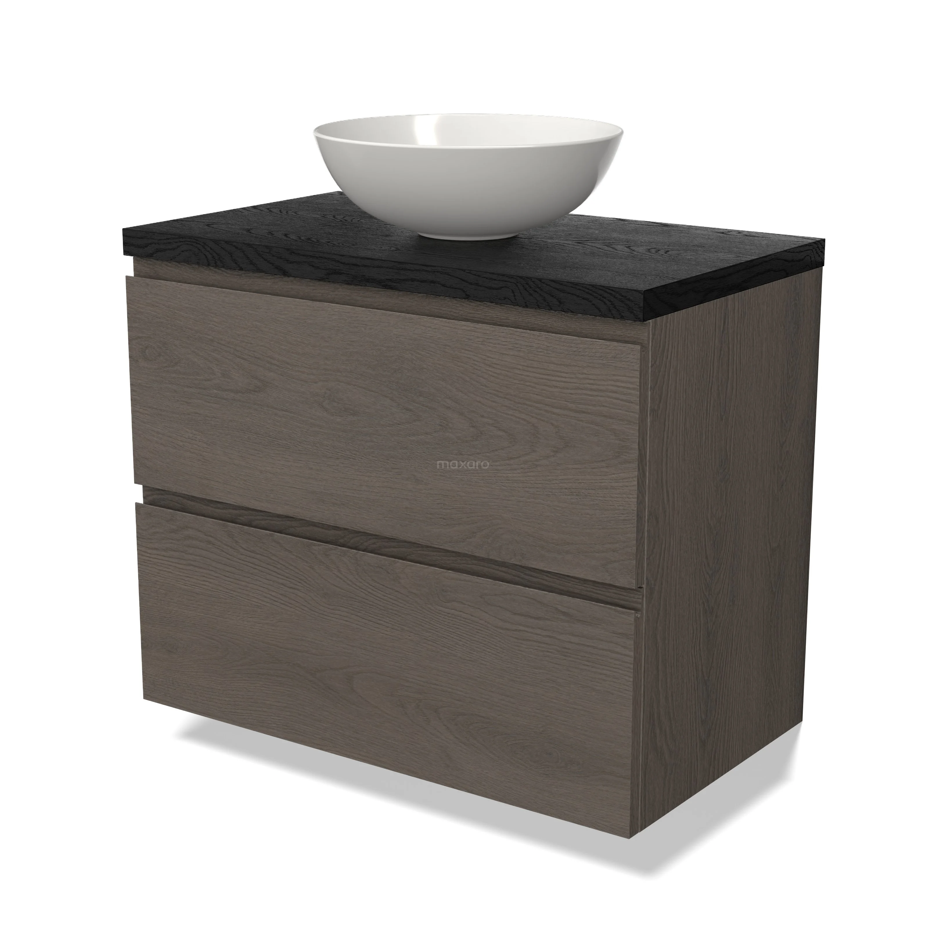 Modulo Plato Vanity units for countertop basin | 80 cm Dark brown oak Handle-less front Black oak worktop 2 Stacked drawers