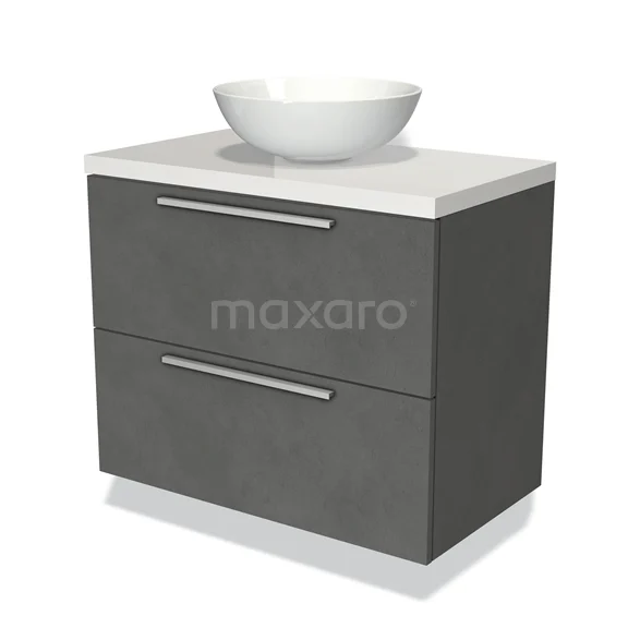 Modulo Plato Vanity units for countertop basin | 80 cm Dark grey concrete Flat front High-gloss white worktop 2 Stacked drawers