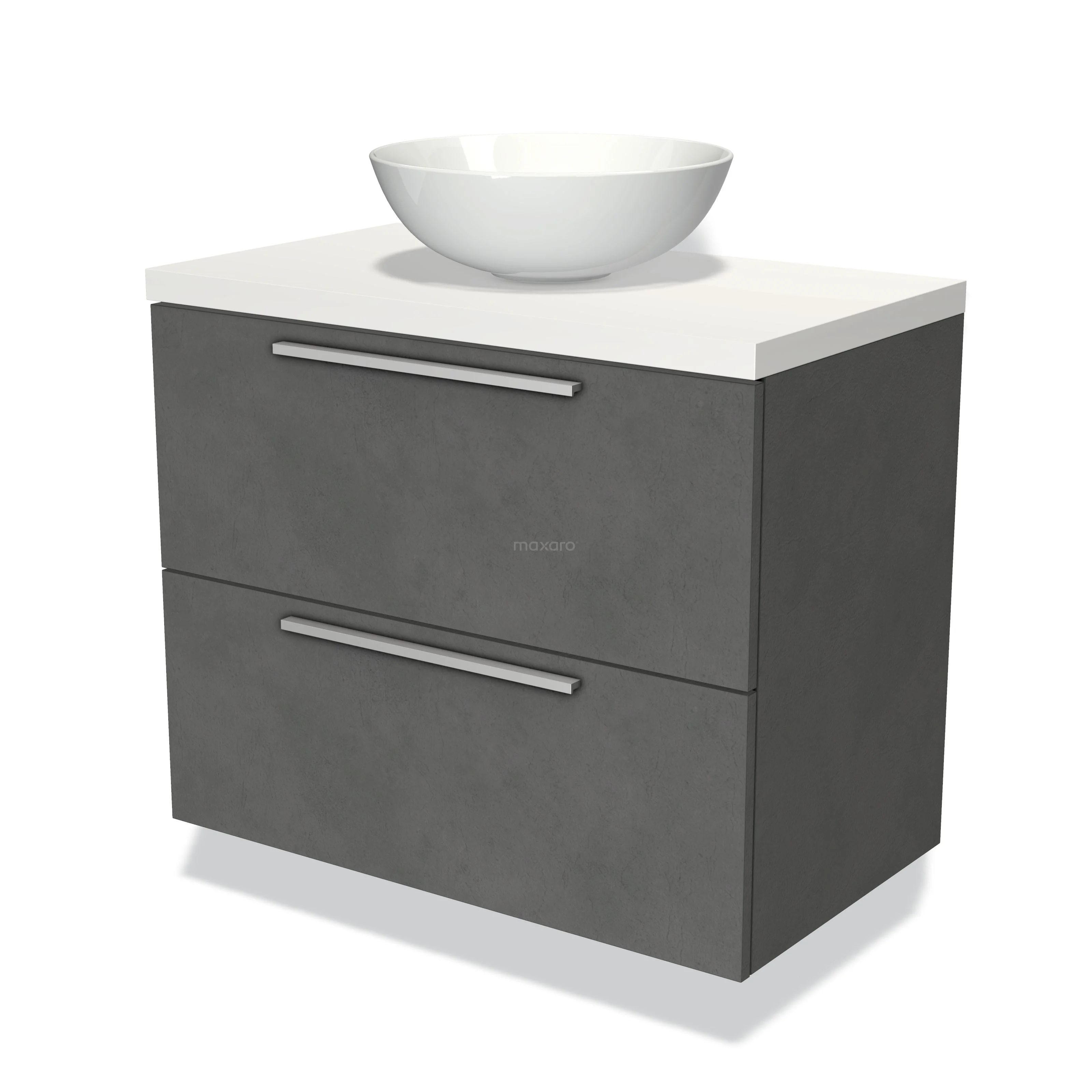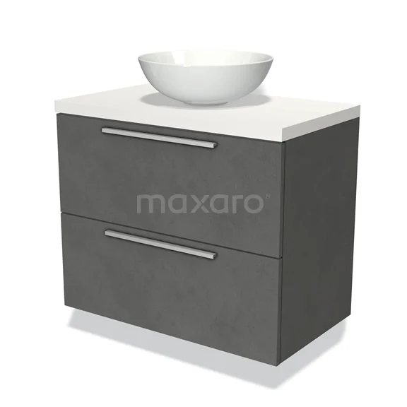 Modulo Plato Vanity units for countertop basin | 80 cm Dark grey concrete Flat front Matte white worktop 2 Stacked drawers