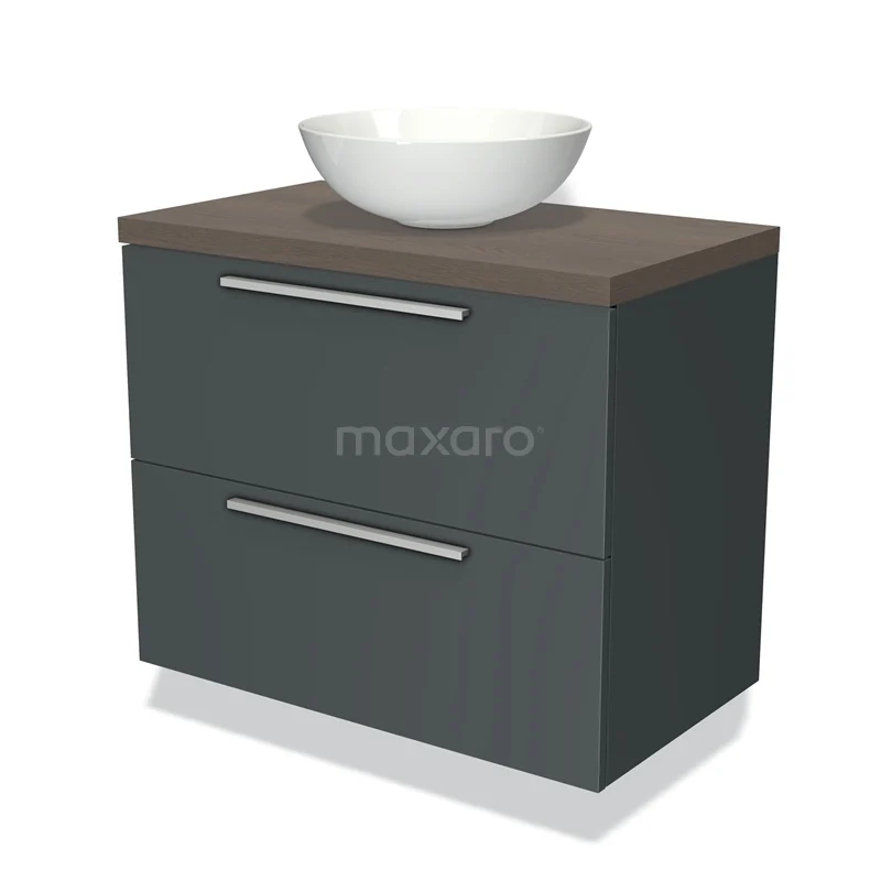 Modulo Plato Vanity units for countertop basin | 80 cm Dark grey Flat front Dark brown oak worktop 2 Stacked drawers