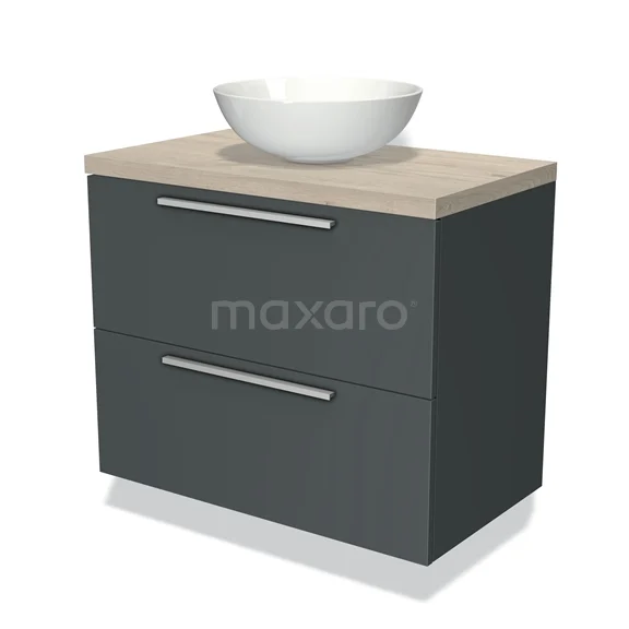 Modulo Plato Vanity units for countertop basin | 80 cm Dark grey Flat front Light grey oak worktop 2 Stacked drawers